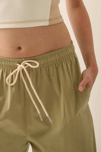 - Drawstring elastic waist.
